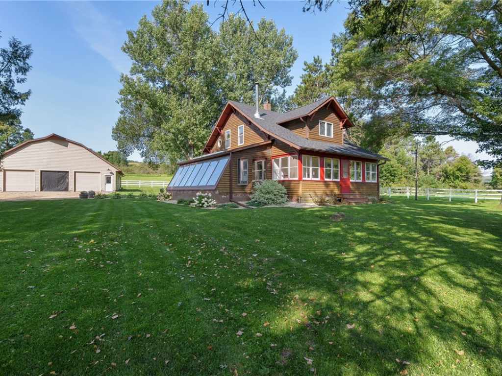 Hobby farm lovers, horse enthusiasts, or those looking to start a business - this one's for you! Nestled on approximately 8 acres, just outside of town, you will be amazed by all this property has to offer. Inside the 3 bedroom, 2.5 bath home you'll experience bright and airy spaces, tasteful finishes, charming updates, a front and back porch - ideal for morning coffee, warming sun room, and open living layout - excellent for entertaining. The expansive 3 car garage includes, an ideal workshop, lean to porch with breathtaking views, and additional attic storage. As you further explore outdoors, you'll be blown away by the rolling landscape, historical character, green pastures, additional storage shed, and restored granary which now serves as home for poultry.The abundance of apple trees, offers all the Fall feels with excellent potential to create your own flourishing business. Take advantage of this rare opportunity to escape to the country to create the special place you call home.