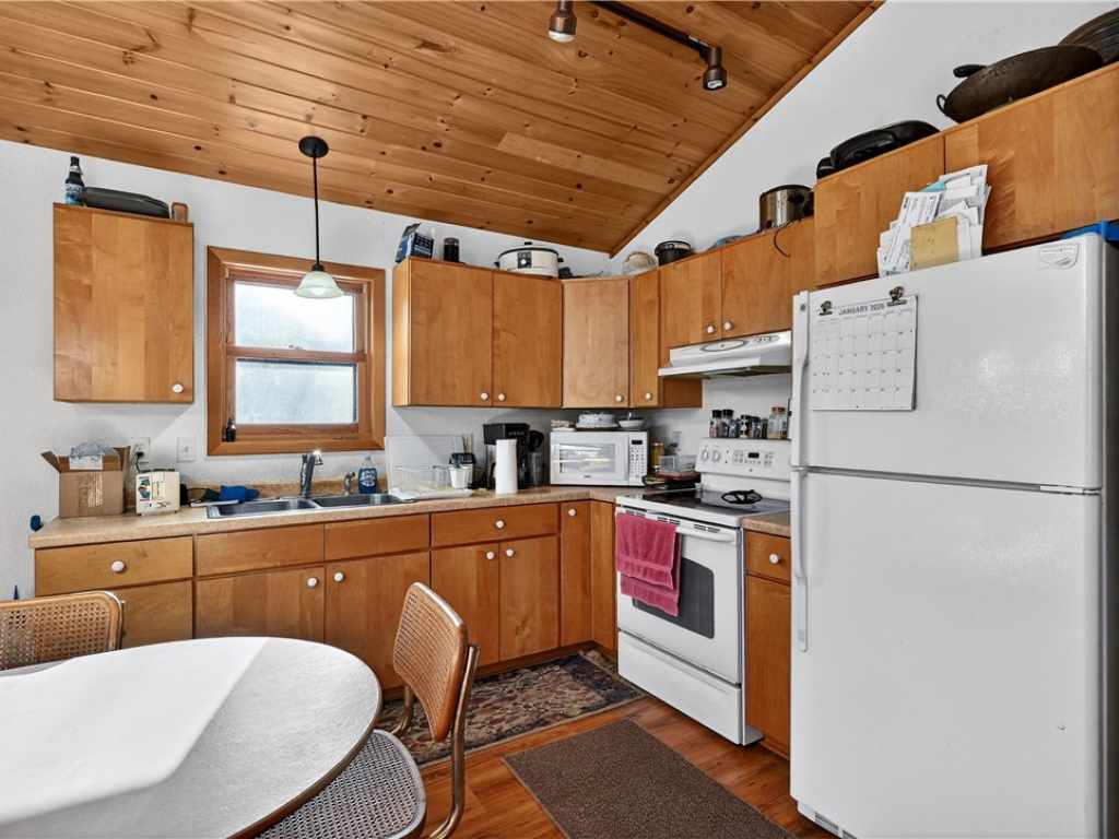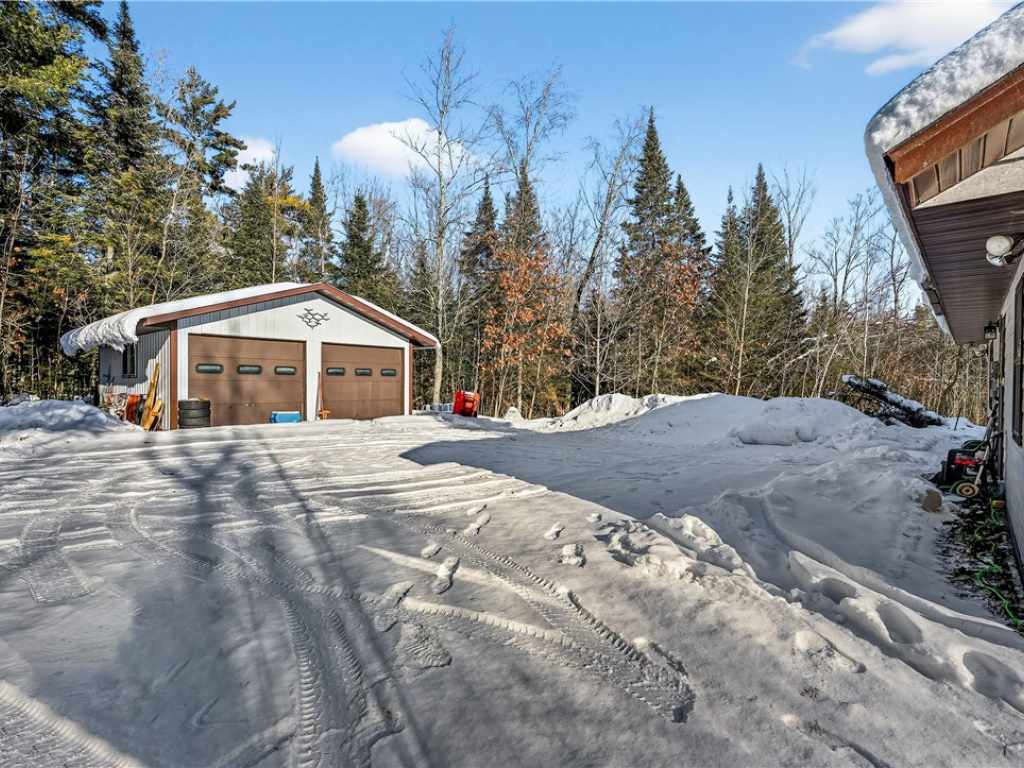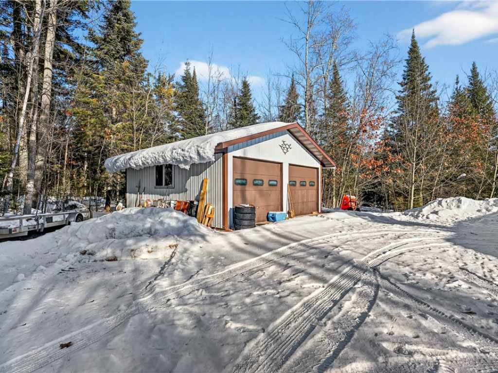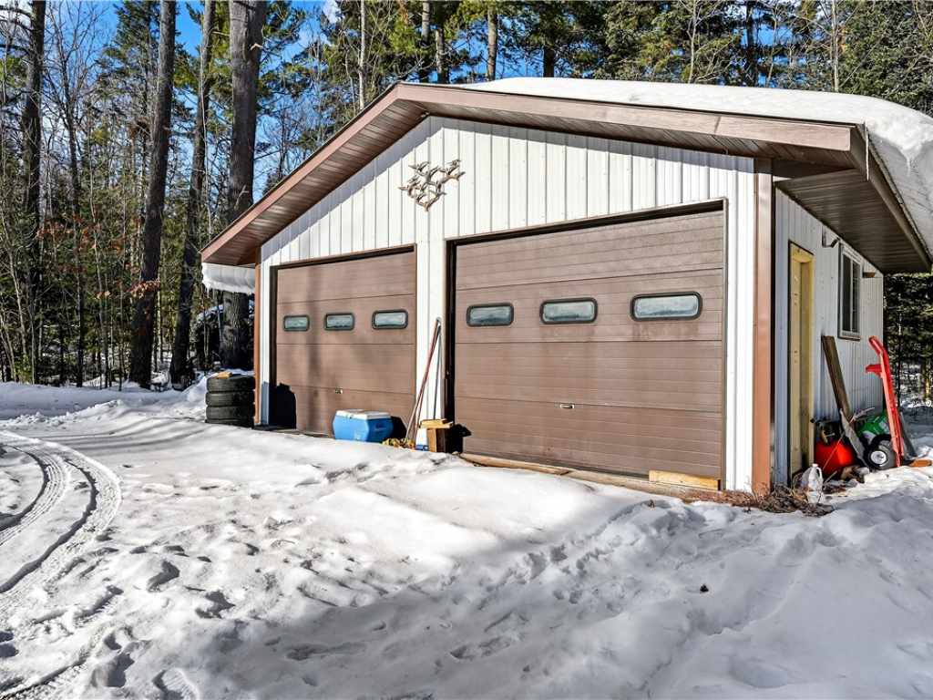 The exterior is designed for low-maintenance living, featuring high-quality cement board siding and a brand-new asphalt roof installed in 2025. The property also includes a spacious 2-car detached garage equipped with a durable steel roof—ideal for storing your UTVs, boats, and Northwoods gear. Whether you're looking for a peaceful year-round residence or a weekend getaway, this property offers the ultimate in privacy and riverfront tranquility.