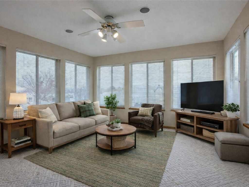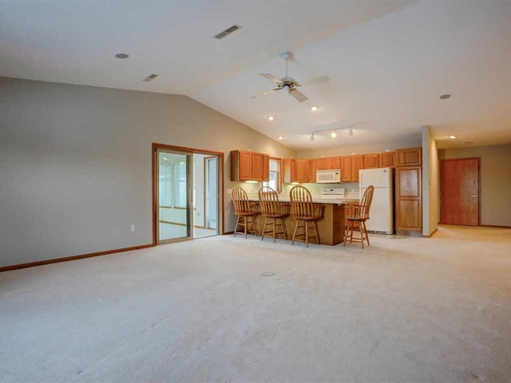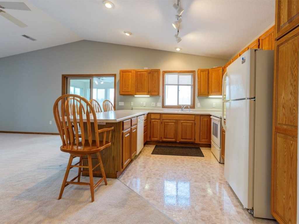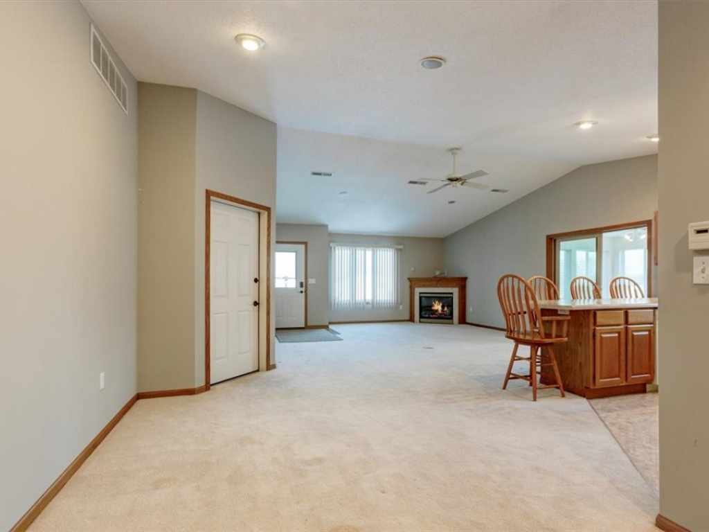 Well-maintained condo located in a private community in North Menomonie. The layout offers a spacious and functional design, with a large living room that flows directly into the dining area and kitchen, creating an open and connected feel for everyday living. Just off the living room is a four-season sunroom, providing additional space to relax and enjoy west-facing sunset views year-round. The primary bedroom includes a private bathroom with a jetted tub and a total of three closets for generous storage. A second bedroom is located near a full hall bath, and there is also a dedicated laundry room for added convenience. Additional features include in-floor heat, a fireplace, surround sound system, and an attached garage. This is a small, two-unit condo association, sharing the building with only one adjoining owner. Condo fees cover lawn care and snow removal. Recent updates include the water heater (approximately 1 year old), roof (approximately 2 years old), and front door (approximately 2 years old). Some photos have been virtually staged.