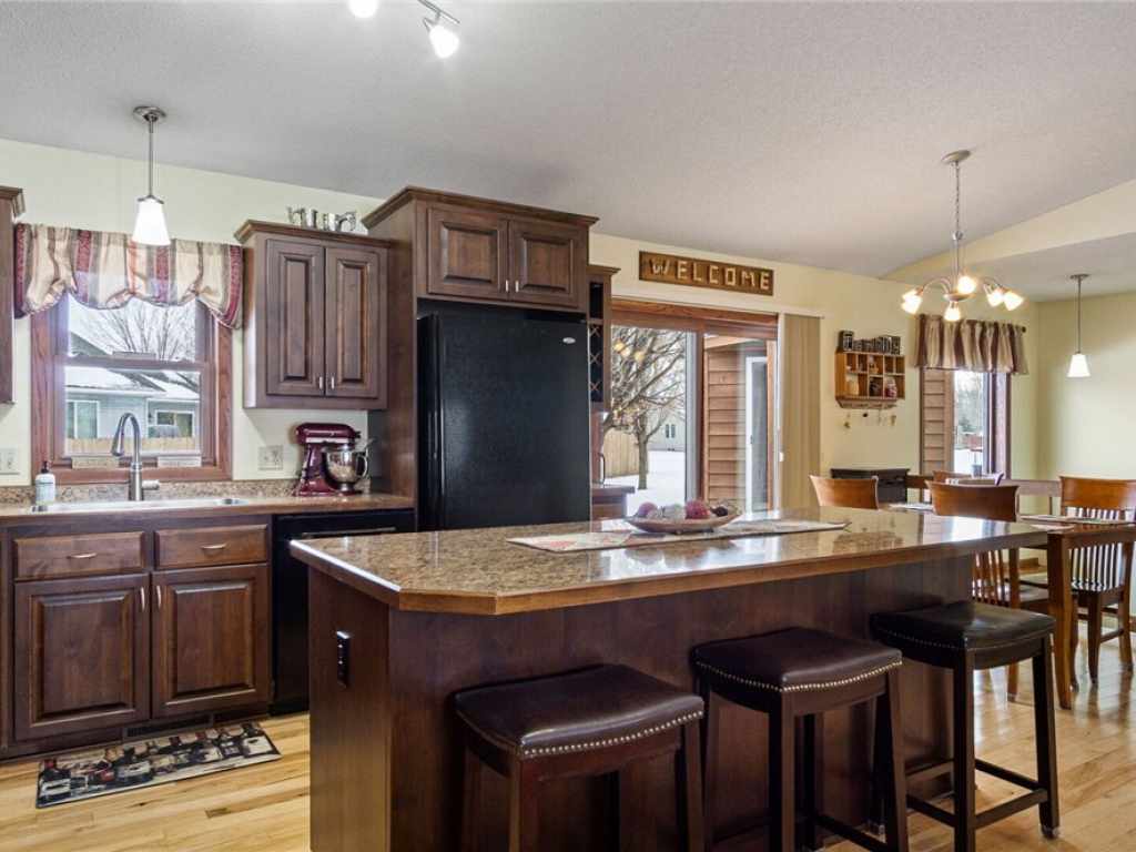Beautiful 4 Bedroom/3 Bath Home Located on Menomonie's East Side! This Well Maintained Home Features an Open Concept w/Vaulted Ceiling & Gorgeous Hickory Wood Flooring in Living Room, Kitchen, Dining Area. Eat In Kitchen Offers Island Seating & Custom Alder Cabinets. Other Highlights Include Master Suite with 3/4 Bath, Main Floor Laundry, Large Lower Level Rec/Family Room & Deck w/Enclosed Gazebo. Venture Into the 14' x 22' Man Cave Located on North Side of Garage! This Room Offers Vaulted Ceiling & In-Floor Heat(Room Could be Utilized as a Workshop or 3 Stall Garage). Property is Located Near Public Schools, Park(s) w/Boat Launch, and Hospital.