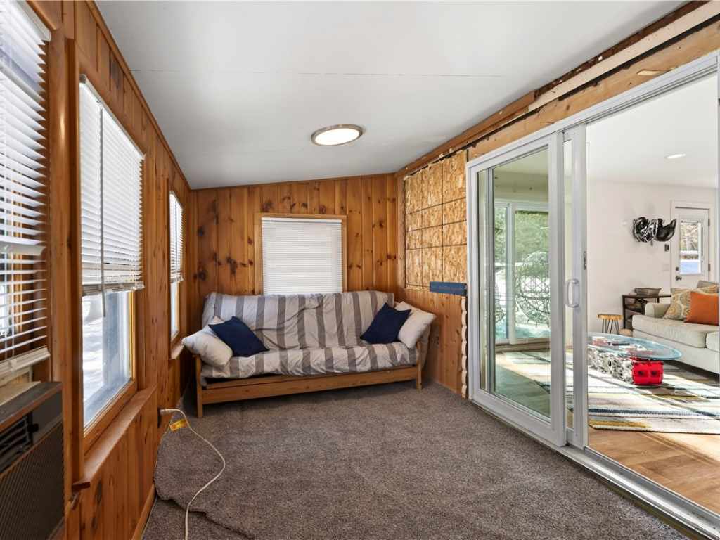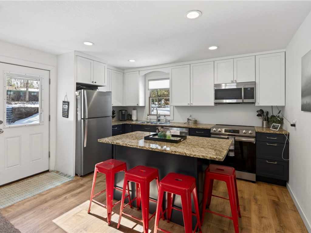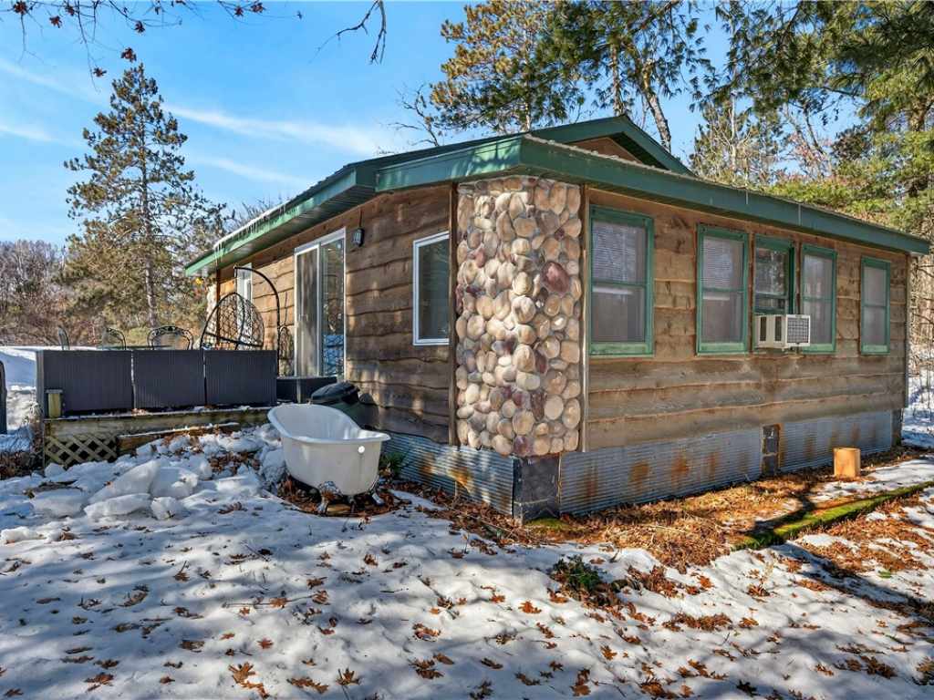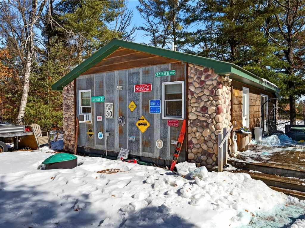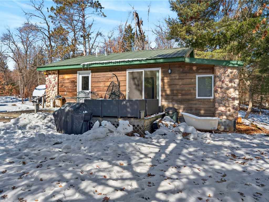 Discover the enchanting allure of our four-season remodeled cabin perched near water’s edge in Hidden Bay on Lost Lake, offering a perfect blend of rustic charm and modern comfort. Spanning 18 acres of picturesque wilderness and shoreline, this newly updated, fully furnished lake cabin invites you to enjoy serene waterfront living. Marvel at the crisp, updated interiors, (new well, windows, plumbing and more) featuring a stylish kitchen with elegant cabinets, a breakfast island, and state-of-the-art appliances. Cozy up by the fireplace in the open-plan living area, ideal for relaxation after a day of adventure. While the front seasonal porch awaits your personal touch, the allure of the waterfront beckons canoeing and kayaking fun. Share the charm with three other cabins on the 677 ft of nature’s shoreline, available for rental options up to 14 consecutive days. Positioned opposite Burnett County land and a stone's throw from thrilling UTV/ATV trails, various recreational lakes, and lively bar/grills, this cabin isn't just a retreat; it's a lifestyle waiting to be embraced.