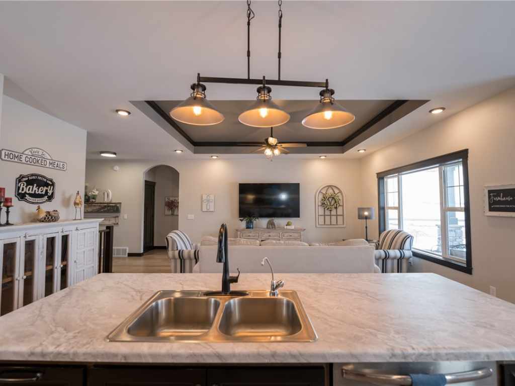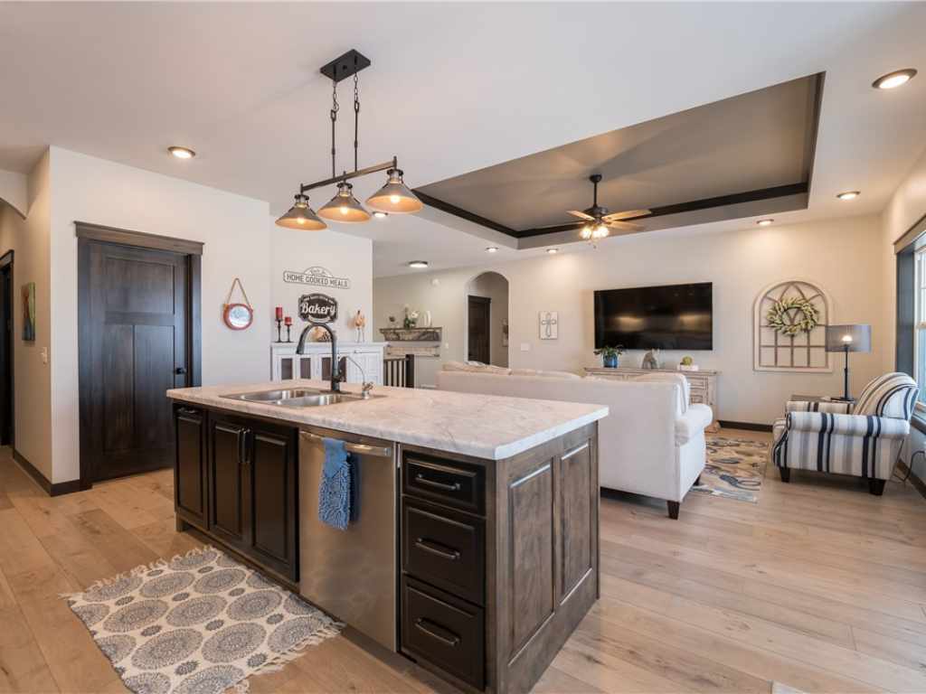 This thoughtfully designed home offers quality craftsmanship & exceptional care throughout. The open floor plan features 9’ ceilings, elegant tray details and a bright, inviting main living area. The kitchen showcases custom cabinetry, a large island, pantry and stainless appliances—perfect for daily living and entertaining. The private primary suite includes a double vanity bath and spacious walk-in closet, while three additional bedrooms offer generous room sizes and large closets throughout. The finished lower level provides ideal space for recreation, work or relaxation. You’ll love the functional mudroom with custom lockers, main floor laundry and solid 3-panel core doors. Outside, extensive landscaping and a sprinkler system create beautiful curb appeal and easy maintenance. A 3-car garage, covered front and back patios, water softener & nutrient system add even more value. Meticulously maintained in a desirable Elk Mound location just minutes to I-94 and Eau Claire’s west side.