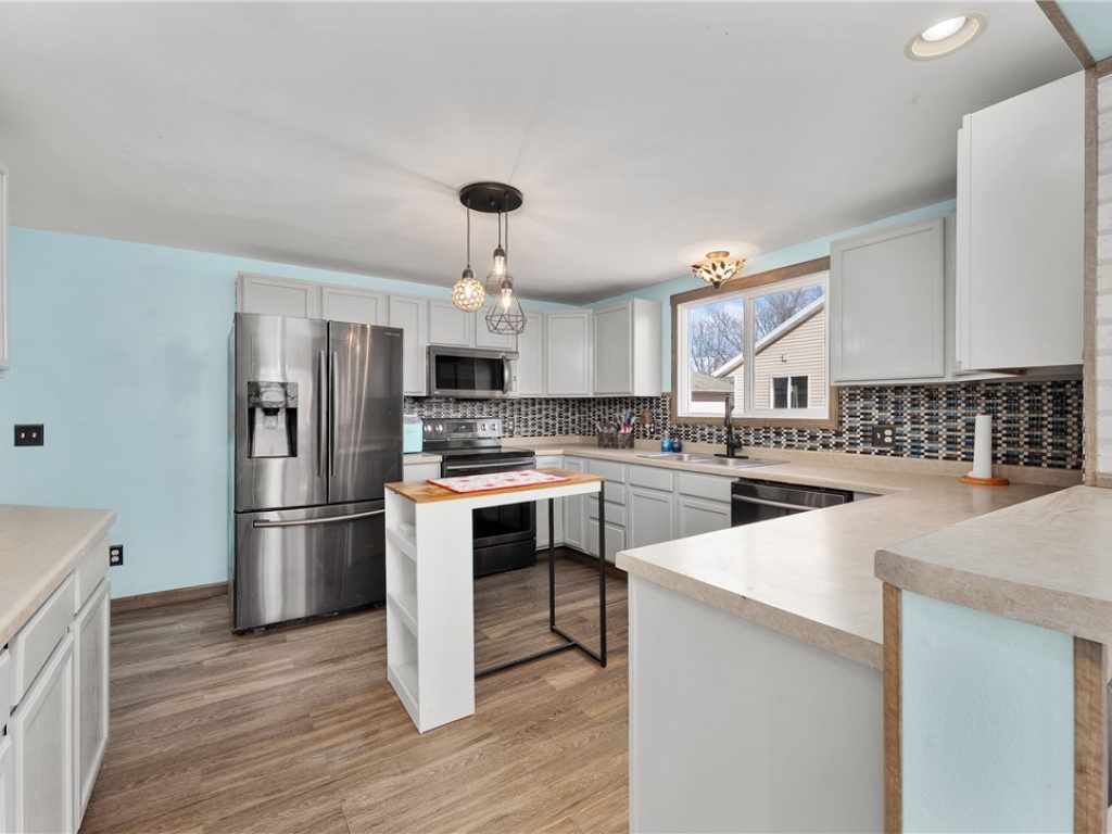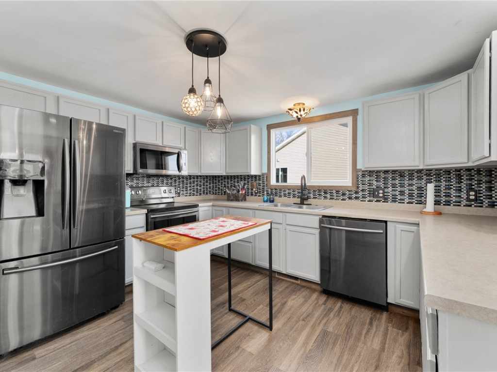 Well-maintained 3BR, 1.5BA home in Menomonie featuring LVT flooring throughout, fresh interior paint, and abundant natural light. Owned solar panels offer energy efficiency and long-term savings. Upper level includes ample third-floor space with potential for additional living area, office, or bonus room. Conveniently located near downtown Menomonie, the Red Cedar River, UW–Stout, local dining, shopping, and trails. Move-in ready with room to grow. A great opportunity in a desirable location.