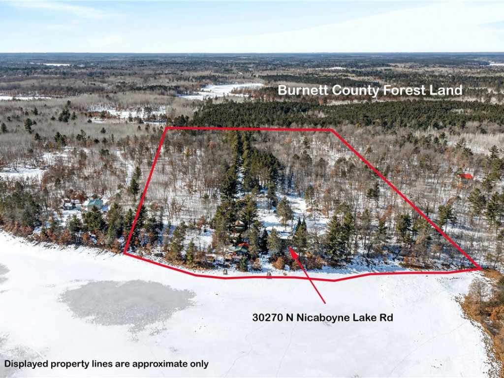 From Danbury, L to WI-35 N, R to WI-77 E, R on Namekagon Rd, L on N Lost Lake Rd, R on N Nicaboyne Lake Rd, L to Property, (Home/Cabin on the Left side) |