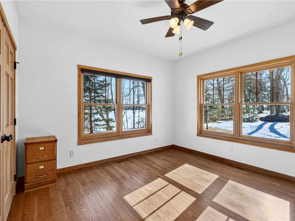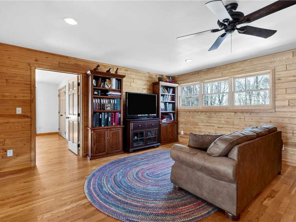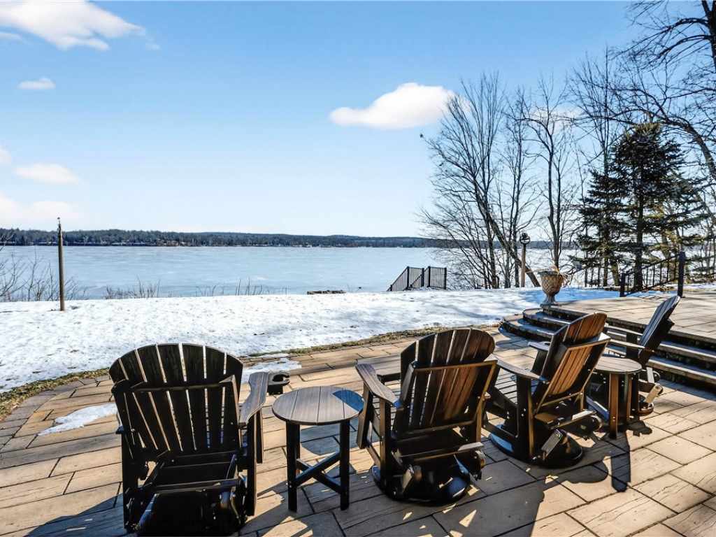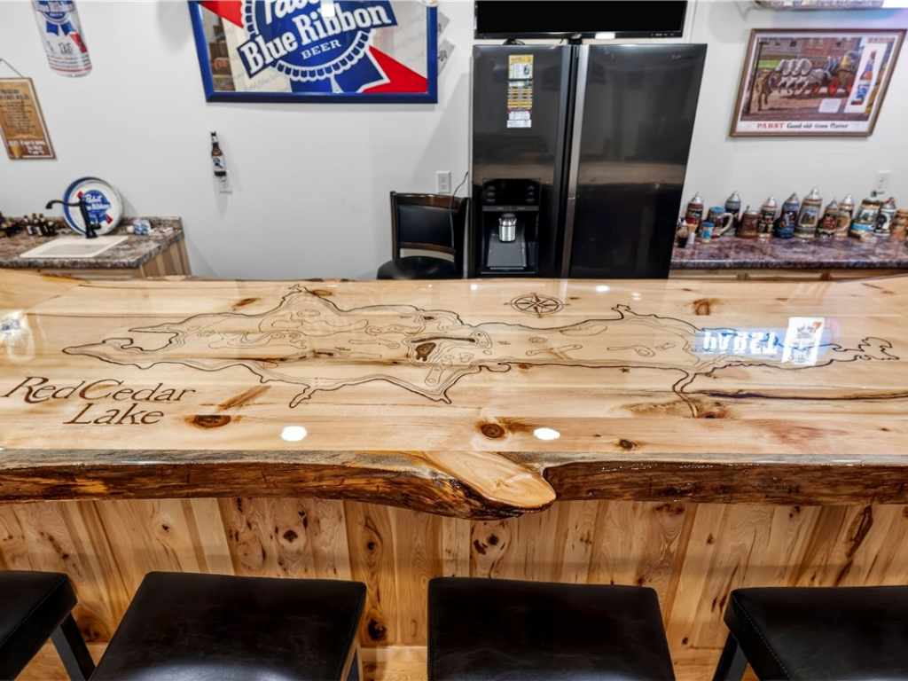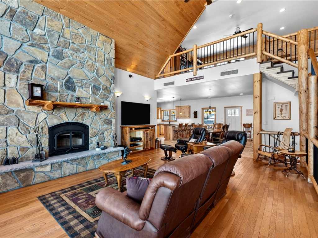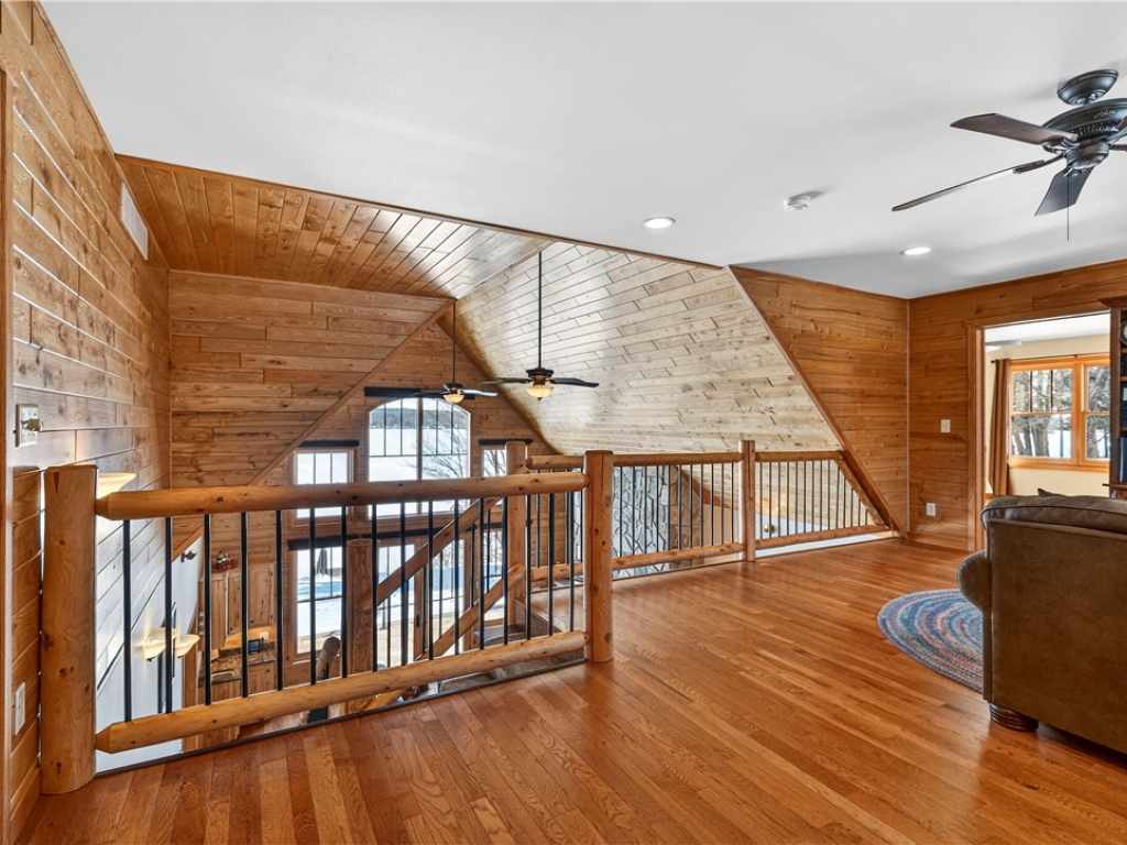 Amazing Chalet on the Red Cedar Lake Chain with 160 feet of pristine frontage! Built in 2016, this stunning 4,400 sq ft home showcases exceptional craftsmanship and high-end finishes throughout. The breathtaking great room features soaring ceilings, a majestic flagstone fireplace, and beautiful hardwood floors. The kitchen is a showpiece with custom rustic hickory cabinetry and Cambria quartz countertops, while a cozy loft captures stunning sunrise views over the lake. Comfort abounds with main level owner's suite and laundry, heated tile floors, in-floor heat, custom tile showers, a heated garage floor, and upgraded steel shingles for long-lasting durability. The lower level offers an incredible entertainment space plus the potential to finish two 13x31 rooms (804 additional sq ft) for a theater, extra sleeping quarters, or a fitness area. Outside, enjoy a large level lakeside yard, beautiful patios, stamped concrete walkways, and a retractable awning designed for effortless entertaining. A 20x40 heated detached garage provides excellent additional storage. The Red Cedar Chain offers 2,400+ acres of recreation, fishing, a boat-up golf course, a restaurant/pub with live music, and easy access to ATV and snowmobile trails.