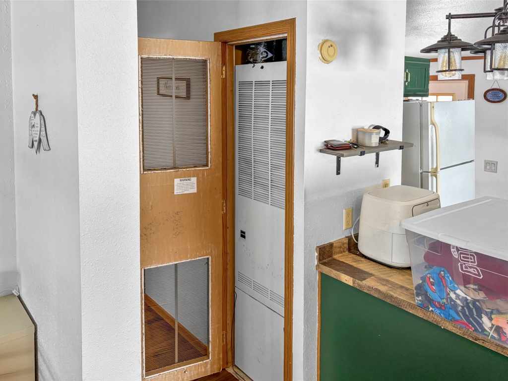 Step outside onto the front covered deck with a beautiful car-siding ceiling, perfect for relaxing and taking in the lake setting. Both bedrooms offer spacious walk-in closets, and the laundry area is conveniently located just off the bathroom.