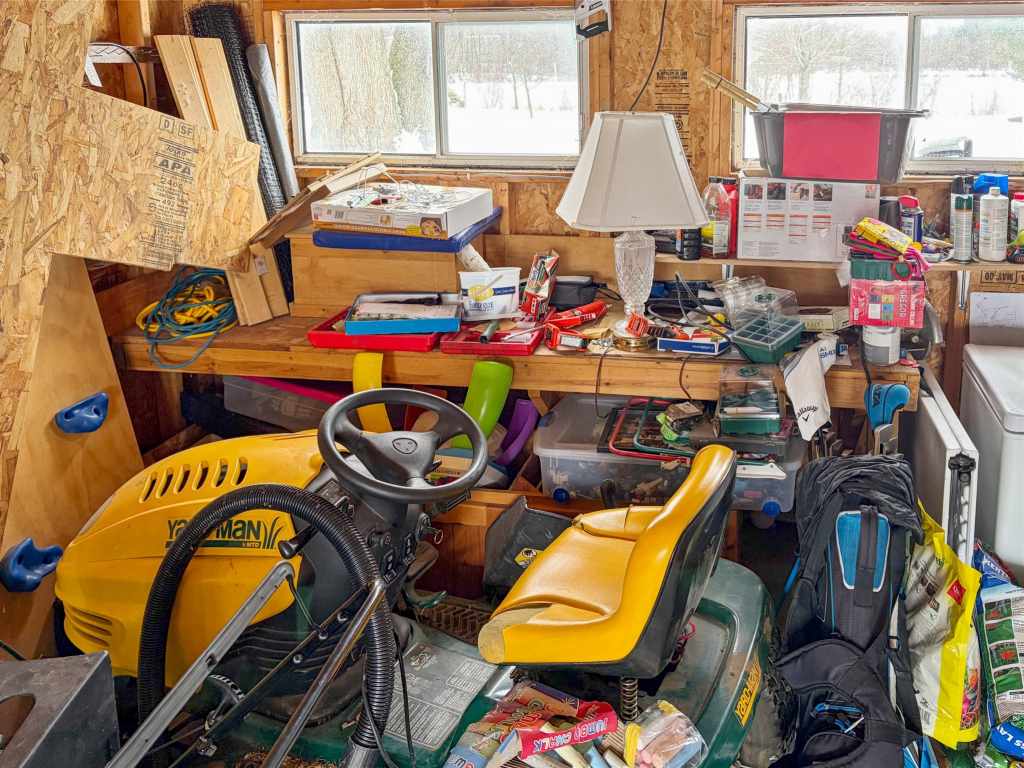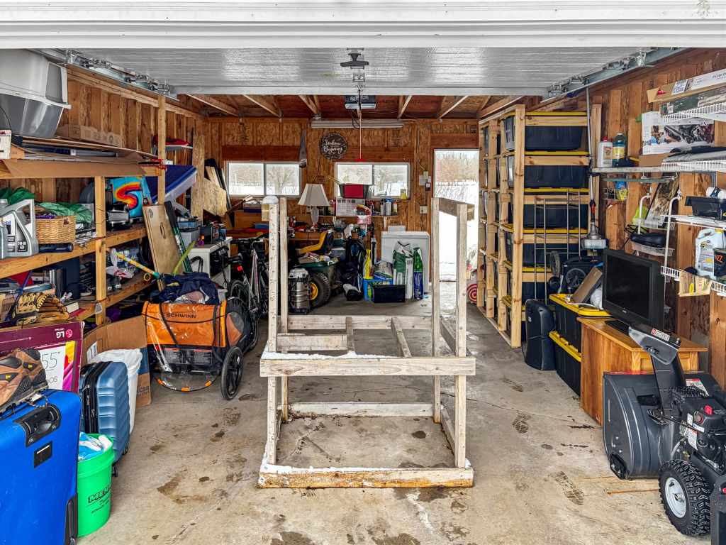 The large backyard provides easy access to the water, making it ideal for enjoying lakefront living. A detached garage offers extra space for storage, hobbies, or recreational gear.