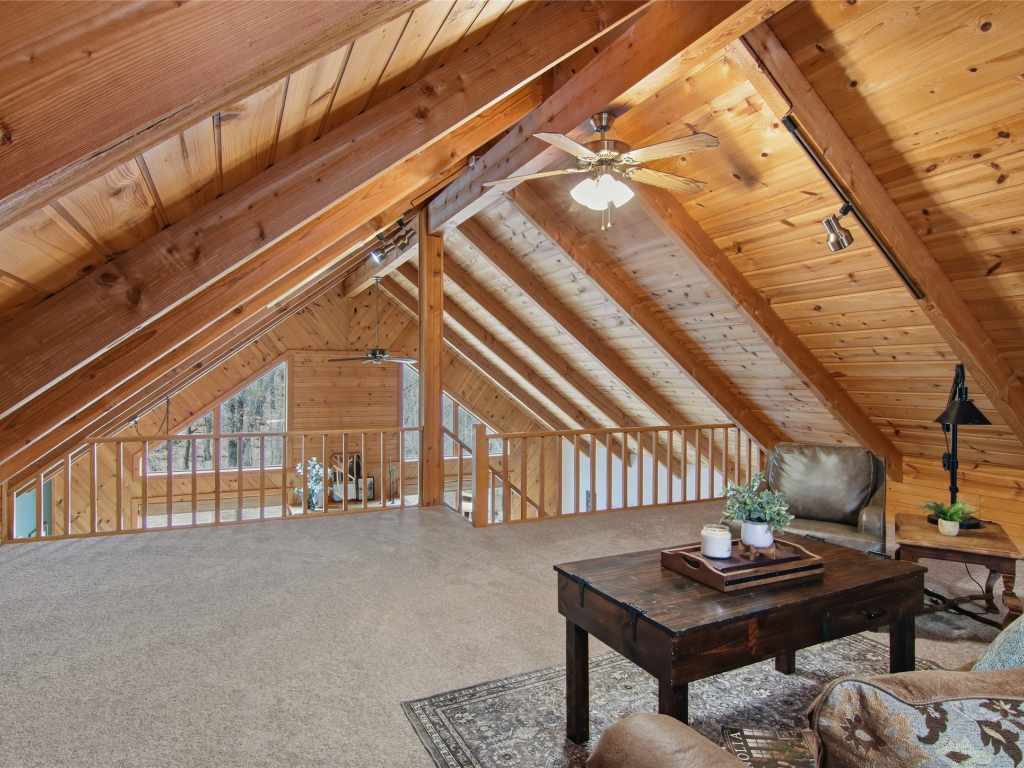 Discover privacy and architectural charm in this stunning 3-bedroom Log chalet, perfectly situated on over 12 wooded acres. Built in 1992 and meticulously maintained, this nature-inspired residence harmonizes beautifully with its surroundings, featuring high-end finishes like oak and maple wood flooring, pine tongue-and-groove ceilings, and a soaring cathedral ceiling.The heart of the home is an expansive living room where a massive wall of glass invites the outdoors in, centered around a cozy stone fireplace. With over 3300 total finished square feet, the layout is designed for both comfort and style, featuring a spacious carpeted loft and a fully finished basement. The exterior landscaping includes elegant stone retaining walls and a picturesque paved walkway leading to the entrance. The main level offers a luxurious bathroom retreat complete with a jetted tub and rain shower. Culinary enthusiasts will appreciate the kitchen’s wood flooring and included oven/range. The lower level is an entertainer's dream, featuring a dedicated theater/media room equipped with a projection screen, perfect for cozy movie nights. For those needing extra space, the property includes a detached 2-car garage, which is fully heated, finished, and trimmed with its own unfinished loft area for storage or future expansion. The 12 acres also provides the perfect footprint for a small hobby farm, complete with a chicken coop and pasture area. Whether you are relaxing on the open porch or exploring your private forest, this home is a masterpiece of Wisconsin living