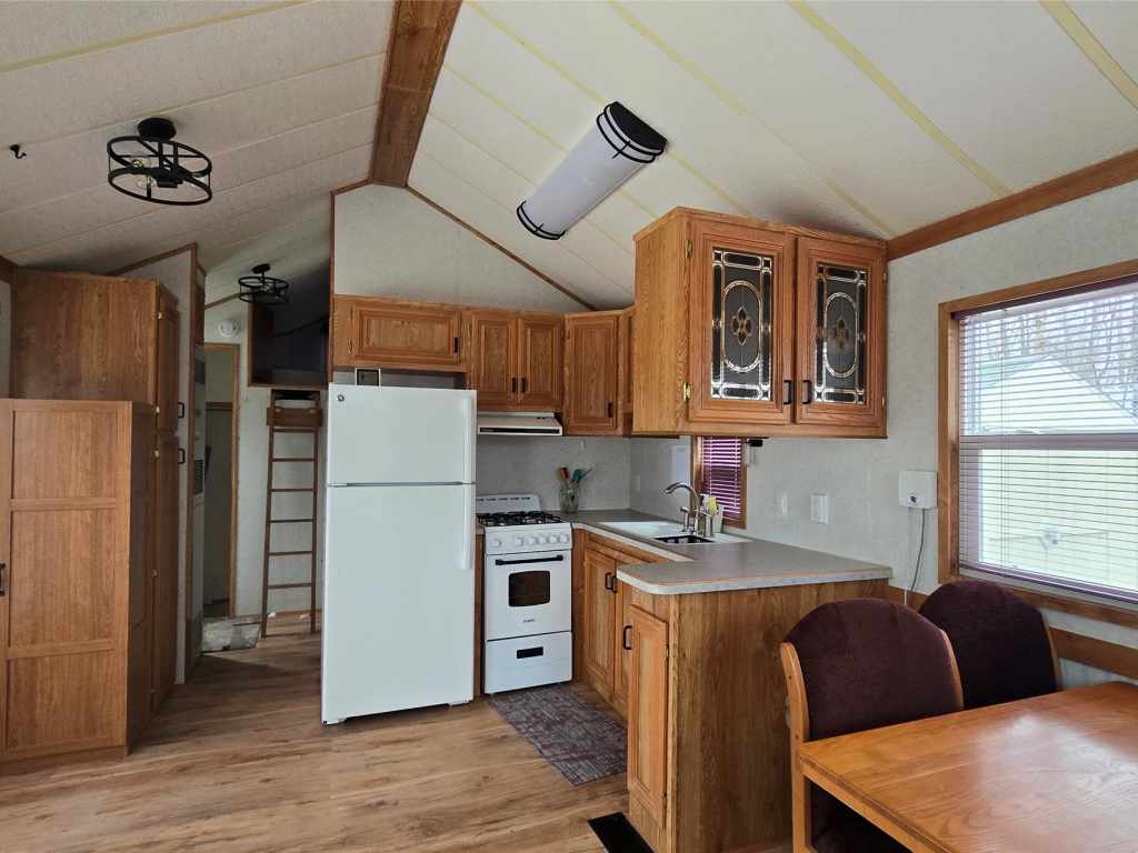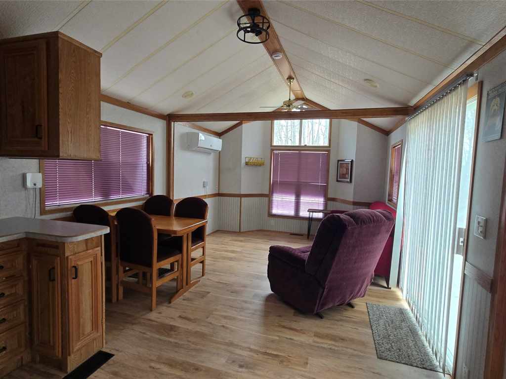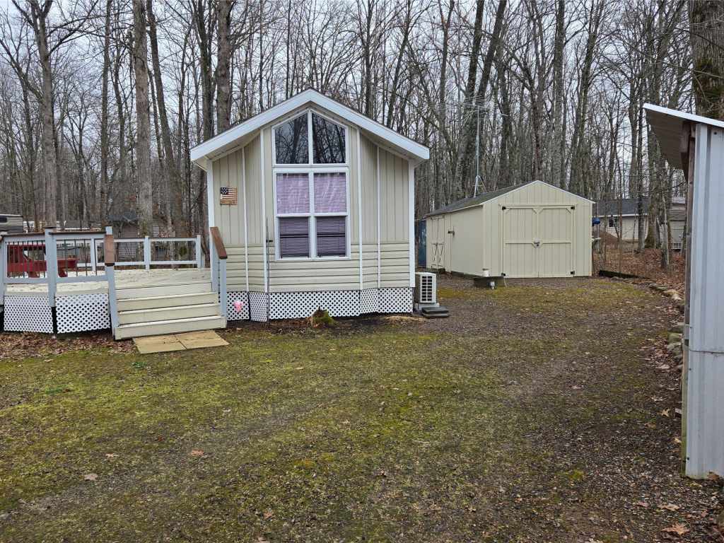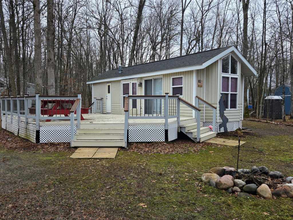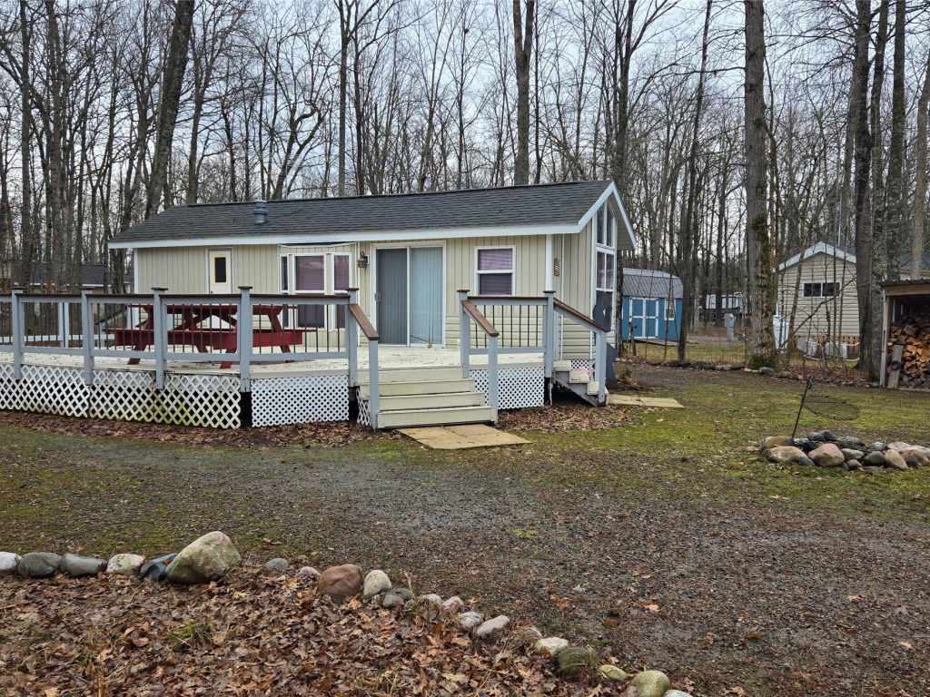 Affordable lake living on Mc Cann Lake! Mc Cann Lake is part of the chain of lakes consisting of Chain Lake, Island Lake, Clear Lake & Mc Cann Lake which will give you plenty of places to explore. Come inside and unwind after a long day on the lake in this well-kept park model featuring a bedroom, loft, 1 bath and generous main living area. This property offers 1 boat slip, 34ft Brecken Ridge Park Model Trailer, large maintenance free deck, garden shed with electric & heat, 2,000 gallon holding tank. & a 2004 20' Princecraft pontoon. Mc Cann Shores is a Camper Condominium Association which you own the lot & a boat slip space, the $522 annual association dues cover your boat slip, road maintenance, shared well, & garbage disposal. With high-speed fiber available, even at the lake, you are never that far away! NO UN-ESCORTED SHOWINGS, AN AGENT MUST ACCOMPANY YOU!