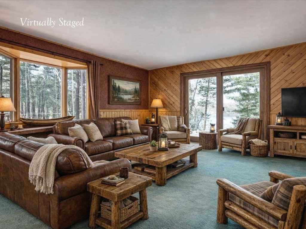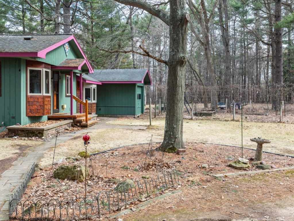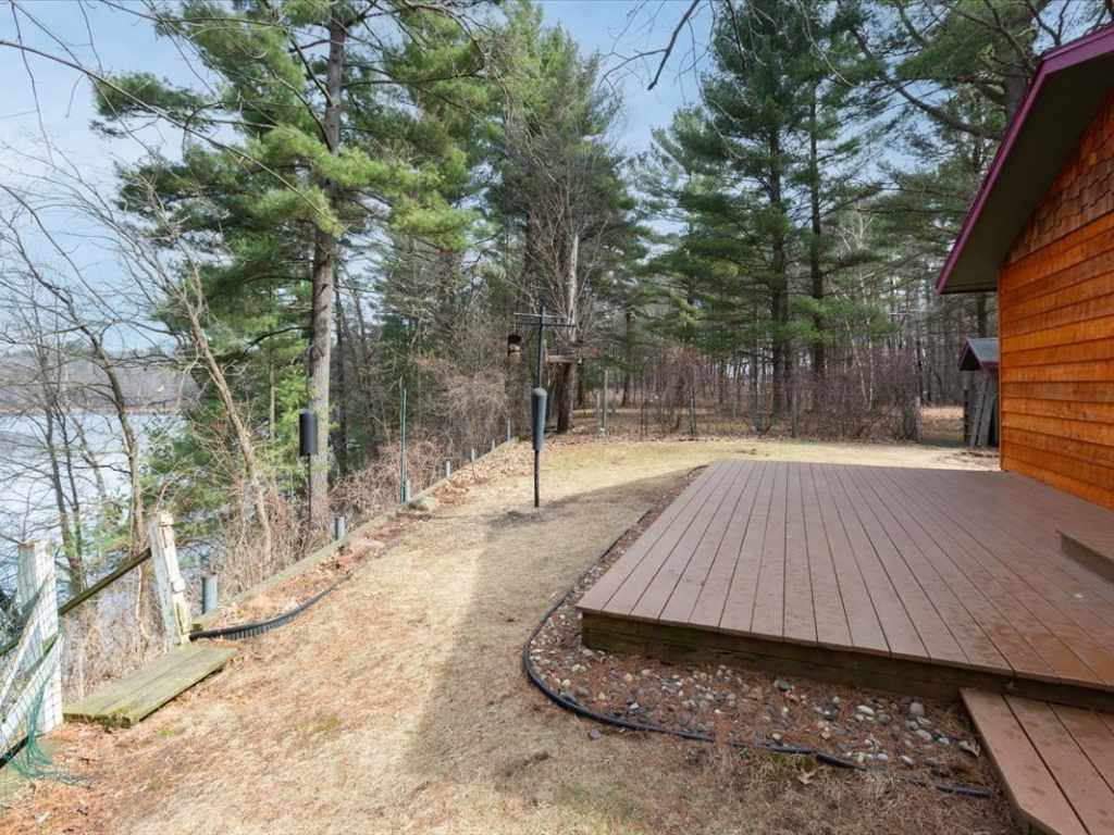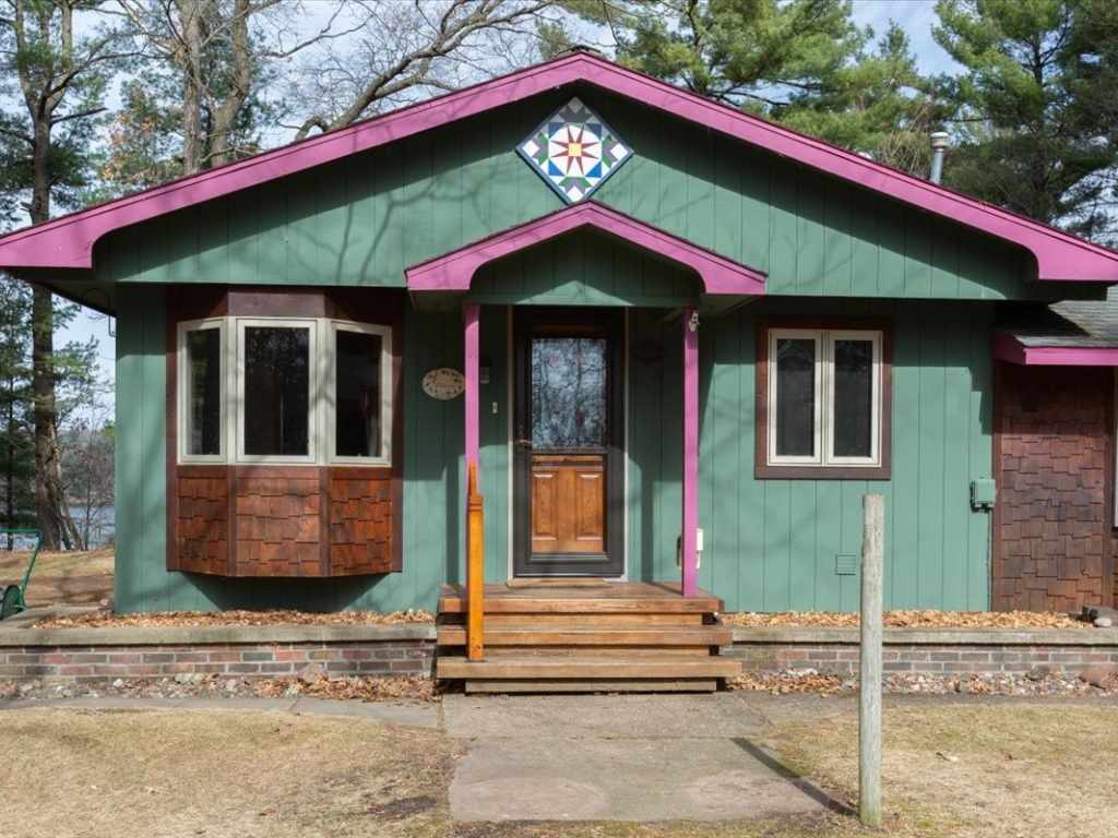 Adorable 4-Season Lakefront Cabin with Stunning Western Sunsets + Additional Lakefront Lot. Fall in love with this charming 4-season cabin/home on Tainter Lake/Hay River. Perfect as a cozy retreat, year-round home, or an ideal place to stay while you build your dream home. This adorable property features 3 bedrooms (or 2 bedrooms plus a comfortable family room with walk out to the back yard), offering flexible living space. An additional lakefront lot is included, providing a total of 186 feet of combined frontage—perfect for added privacy, expansion, or future building opportunities. The cabin/home has been well cared for and offers a great opportunity to enjoy as-is or update to your personal style. A rare chance to own a charming lakefront getaway with extra space and incredible potential. Relax on the deck and take in breathtaking western sunsets, surrounded by perennial gardens and a peaceful, nature-filled setting. Watch eagles soar overhead and enjoy great fishing right from your shoreline. Home was Pre-Inspected, Newer Drainfield. Fish House Included and additional storage sheds, the garage currenty used for storage and workshop. 14 Month Buyer Home Warranty Included, home was Pre-Inspected... some photos have been staged.....don't miss out on this sweet bit of Lake Life!