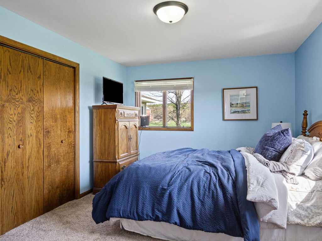 Country living meets convenience just minutes south of Elk Mound w/ easy access to Eau Claire, Menomonie & Chip. Falls & a highly regarded school system. Set on 5 acres, this one-owner property is ideal for horse lovers or hobby farm dreams, featuring 3.5 fenced acres, a round training pen & a 36X56 pole barn w/ 4 stalls, tack room, storage w/ overhead door & lean-to shelter. Enjoy added convenience w/ a chain-link dog run connected to the home. Numerous quality features, updates & energy-efficient improvements include a knotty pine 4-season sunroom, open-loop geothermal, LP Smart Siding, roof, gutters, garage doors, interior flooring, appliances, kitchen remodel, interior paint, gas FP, patio & garage concrete, breakers, PEX plumbing, spigots, pressure tank, well pump, RO system & finished LL w/ wet bar. Spacious yard, high-producing garden, luscious clover throughout, crab apple trees & great indoor/outdoor entertaining space. Office could be 4th BR. Pre-inspected home, well & septic