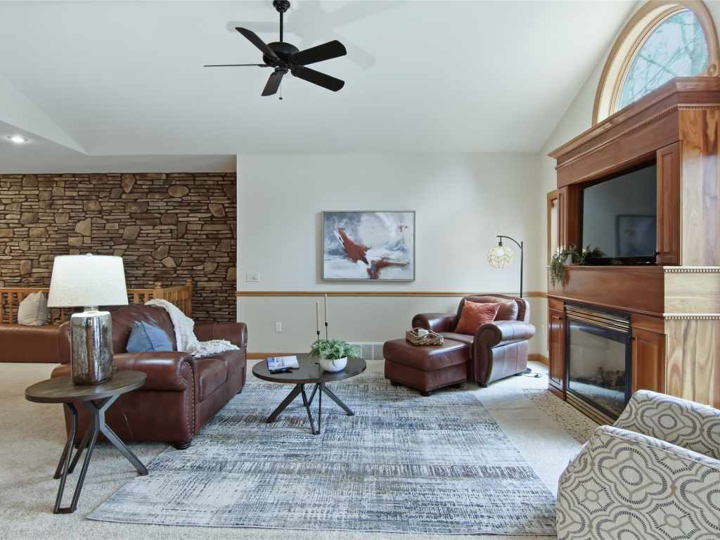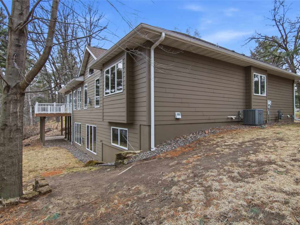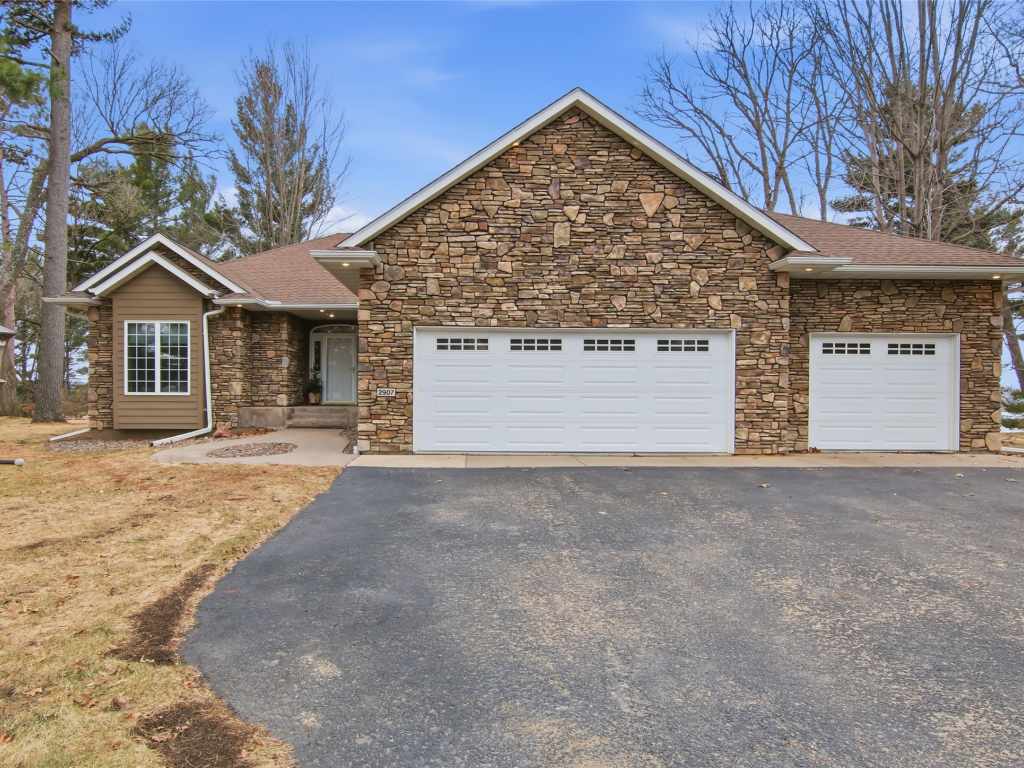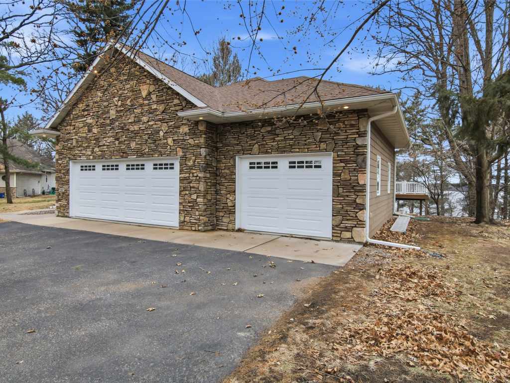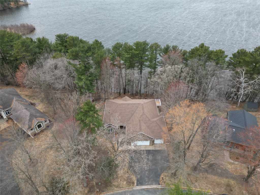 Quality and Elegance can be found throughout this exquisite home on Lake Menomin. This dream home is custom-built boasting a masterpiece of design and craftsmanship, and provides beautiful lake views from multiple vantage points. Enjoy open-concept & main-floor living with spacious rooms and high-end finishes. Featuring 9' ceilings for a voluminous feel, a large kitchen with cherry cabinets & quartz counters, master ensuite with new shower & soak tub, 4-season room, multiple fireplaces, and a large garage w/in-floor heat. The full lookout basement features a large family room with wet bar, in-floor heat, and the perfect space for extra storage. Other great highlights to mention, there's a safe room, covered patio, composite deck, and new retaining wall. Scenic and private surroundings with lush and mature trees, nice rock landscaping, and a very well-maintained home with a welcoming flow!