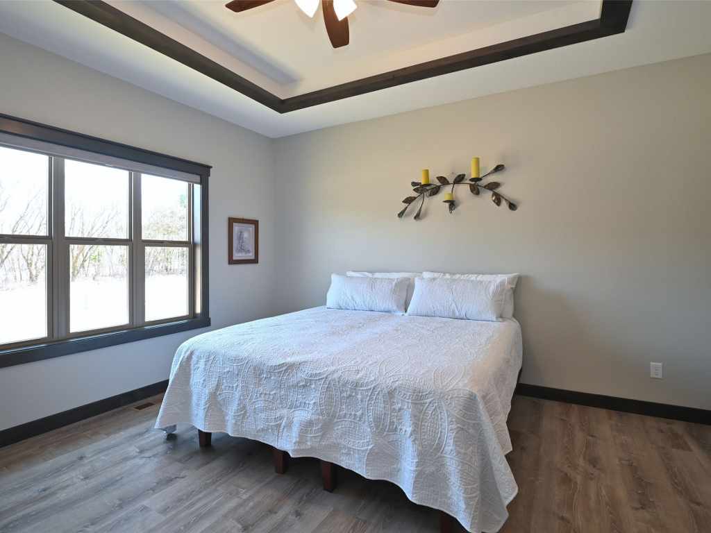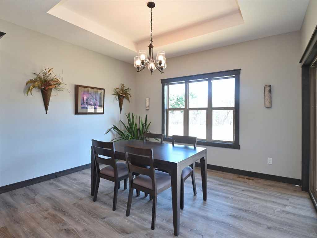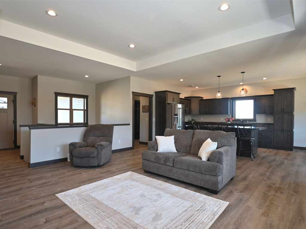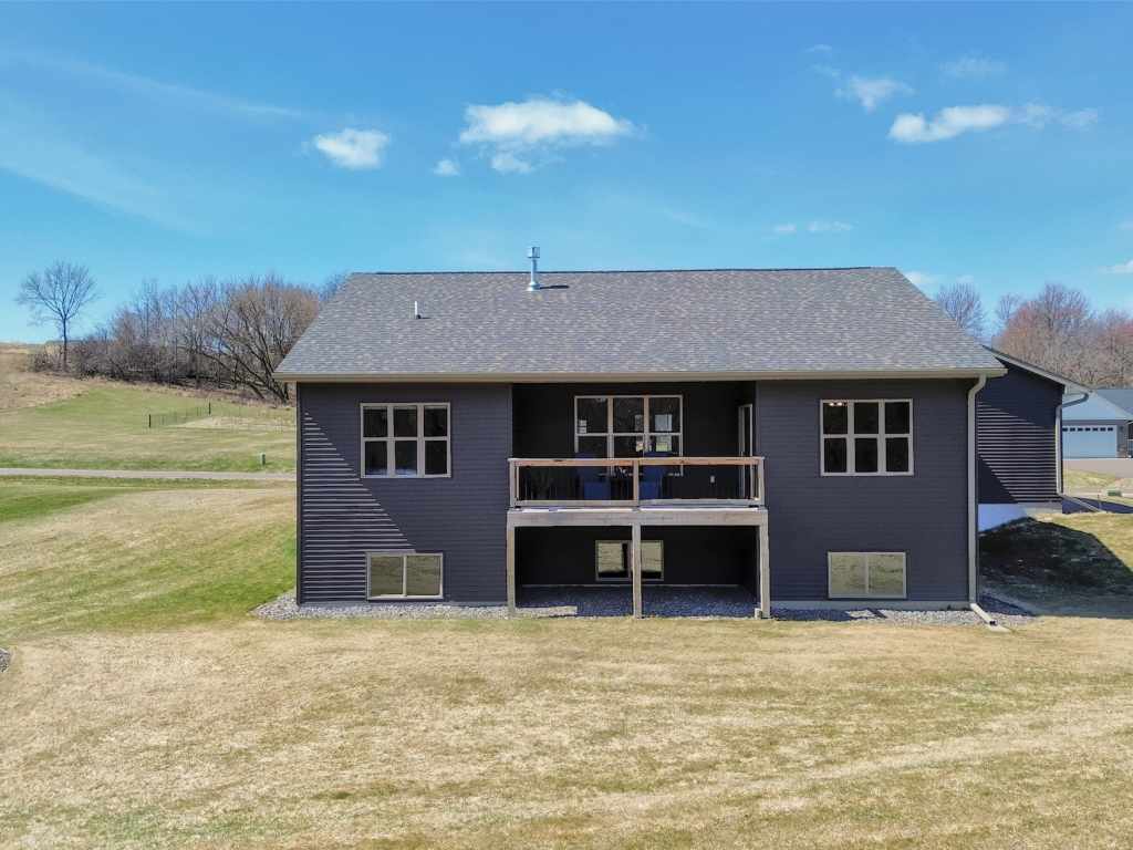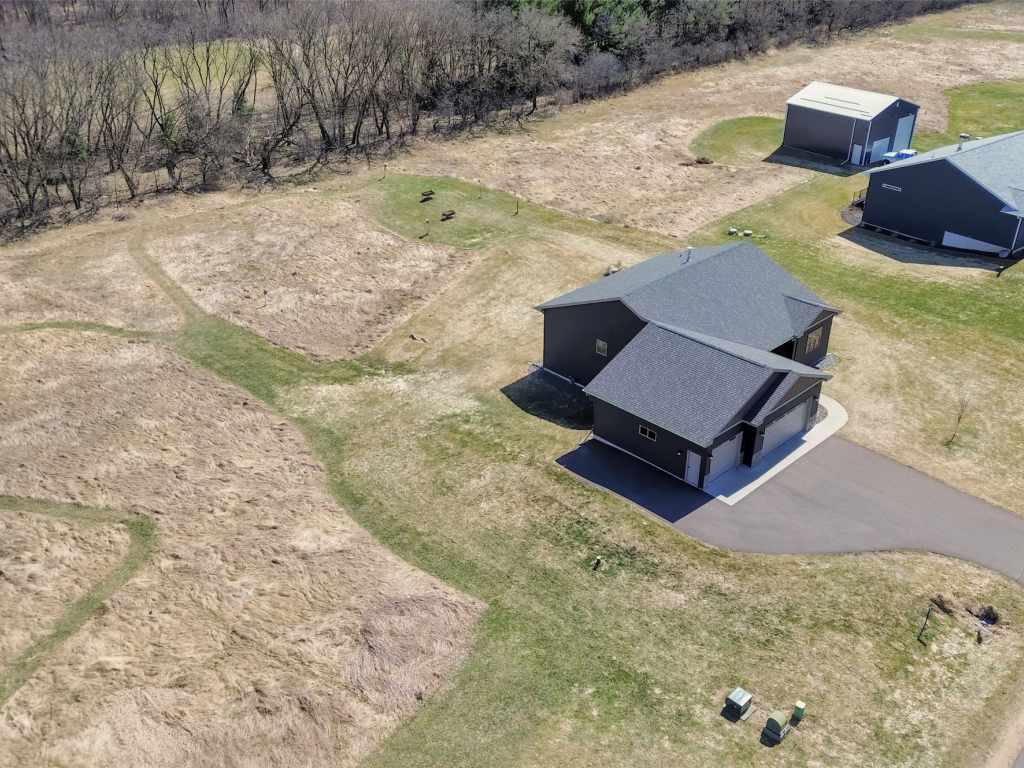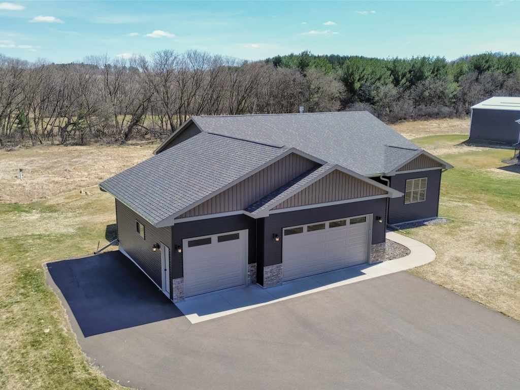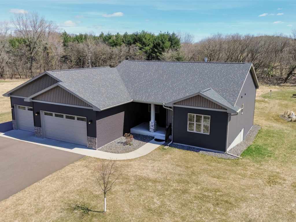 Welcome to this beautifully crafted new construction home in Timber Valley Subdivision, set on a spacious 1-acre lot just minutes from town. Offering 2 bedrooms, 3 bathrooms, and a 3-car garage, this home blends modern design with thoughtful functionality in a peaceful country setting. Step inside to an open-concept layout with vaulted ceilings and clean, modern finishes throughout. The kitchen is designed to impress with stainless steel appliances, a large center island, and plenty of workspace for everyday living or entertaining. The living room features a stunning gas fireplace that creates a warm and inviting focal point. The master suite is a true retreat, complete with a spacious bedroom, large bathroom, walk-in closet, and a beautifully tiled shower. A convenient main floor laundry and mudroom combination includes built-in lockers and additional storage to keep everything organized. The lower level offers excellent potential with a finished third bathroom and an open layout ready for your vision - ideal for adding two additional bedrooms, a family room, and even a home office. Enjoy the outdoors from both the covered front porch and the covered wood deck overlooking scenic countryside and wooded views. Additional highlights include an irrigation system, attractive landscaping, and the peace of mind of a pre-inspected home. Located just minutes from schools, shopping, parks, and the community YMCA, with easy access to I-94 for commuters, this property offers the perfect balance of convenience and space. Don’t miss your opportunity to make this home yours!