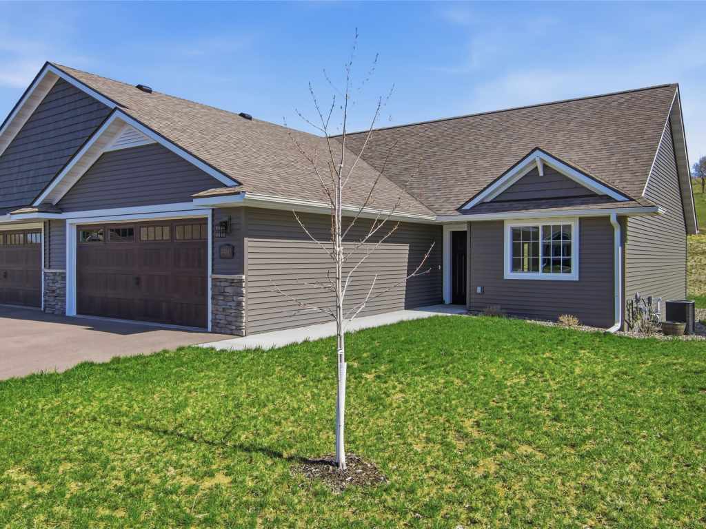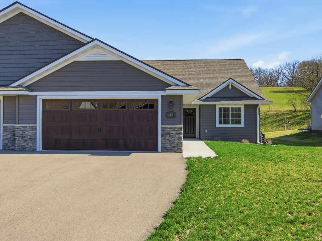 Beautiful 3-bedroom, 3-bath twin home built in 2024 by C&M Builders, located on Menomonie’s East Side. This like-new property has been meticulously maintained and offers modern finishes throughout, including quartz countertops in the kitchen and baths. Great center island in the kitchen with rollouts in the cabinetry and breakfast counter seating! Enjoy the bright and inviting 3-season porch, which opens to a stamped concrete patio—perfect for relaxing or entertaining. The impressive primary suite features a walk-in shower and a generously sized closet. Additional highlights include convenient main-floor laundry and a no-step entry for easy accessibility. The finished lower level expands your living space with a large family room, third legal bedroom, full bath, and abundant storage in the mechanical/unfinished area. Available due to corporate relocation, with the potential for a quick closing.