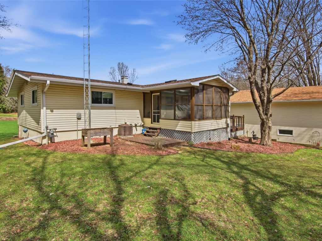 Conveniently located just 3 miles North of I-94 off Hwy 25, this 3 bedroom / 2.5 bath well maintained home is situated on a private 3.3 acre site and includes a 28' x 44' 4 car detached garage for the vehicles and toys! New triple pane vinyl windows just installed 3 years ago! Wonderful screened porch on the rear to relax and enjoy nature! Tasteful landscaping! If another storage shed/pole building would be desired, there is enough room to build with no restrictive covenants! Lower level includes a rec room, family room/office space, 3/4 bath and a one car tuck under garage! 24/7 Fiber Internet available. Owners have lived in the home for 40 years and are now choosing to downsize! 60 day closing preferred. Kinetico water softener is owned and will be included in the sale.