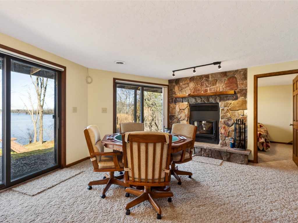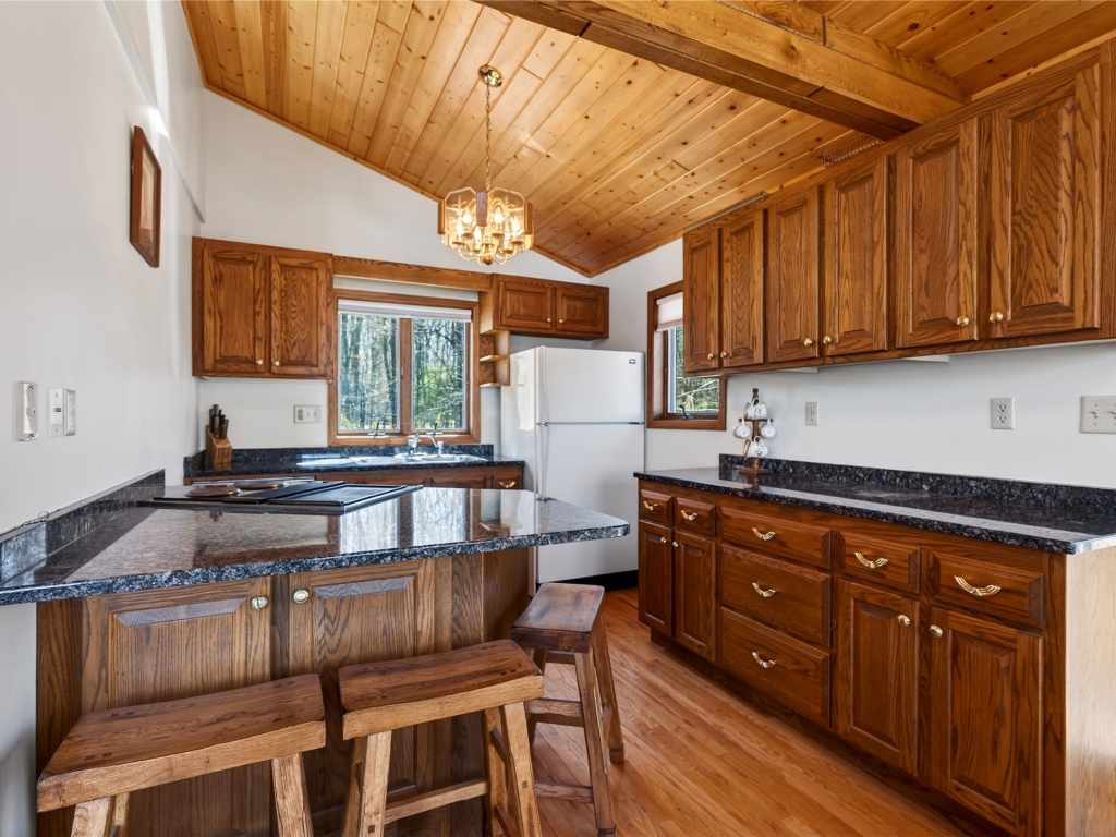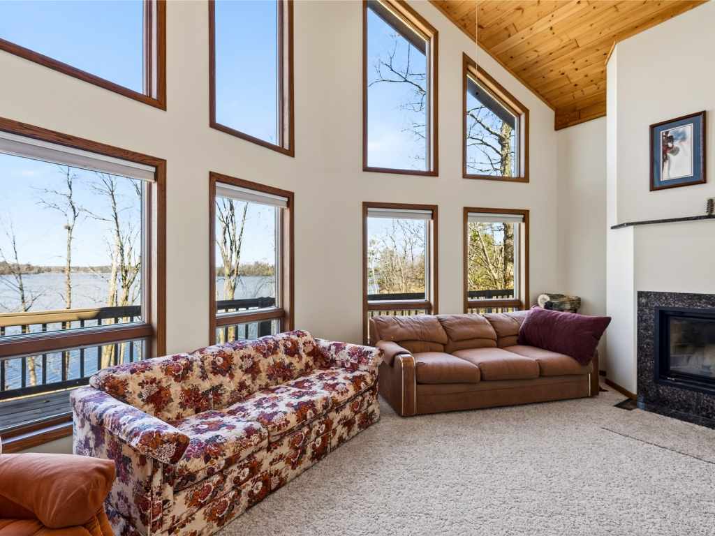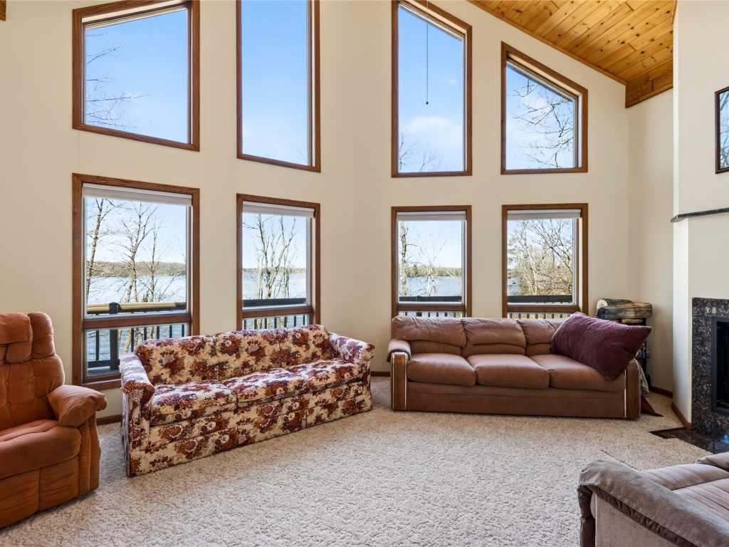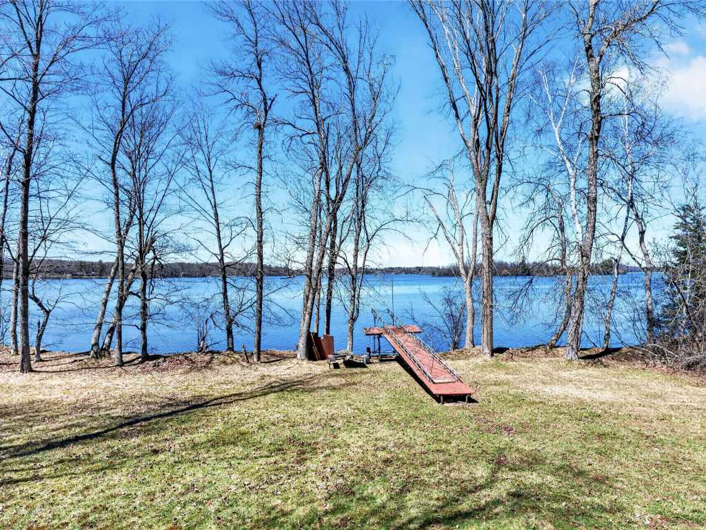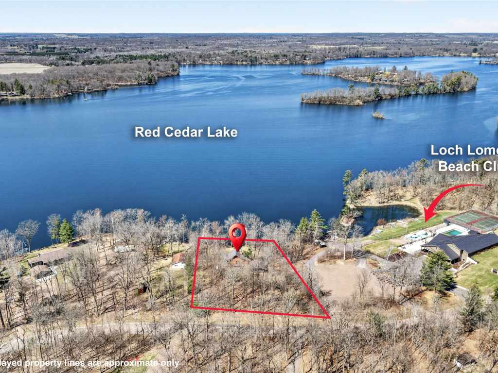 Beautiful cabin on a phenomenal low-elevation lot on the picturesque shores of Red Cedar Lake, featuring 117 feet of pristine frontage. This inviting 4 BR / 2 BA home offers an open-concept layout with free-flowing living spaces designed to capture stunning lake views, soaring ceilings, and 2 cozy fireplaces. The kitchen features oak floors and granite countertops, adding warmth and quality to the heart of the home. The loft provides flexible space for sleeping, an office, or a reading nook, while the walkout lower level adds additional bedrooms and living space—perfect for hosting family and guests. Enjoy warm summer days on the lakeside deck or take a short stroll to the sandy, low-elevation swimming area. The large, level yard is ideal for family games, a fire pit, or relaxing to the sounds of the loons. A two-car garage offers plenty of storage for all your lake gear. Red Cedar Lake, connected to Hemlock & Balsam Lakes, offers miles of boating and fishing, along with a boat-up golf course, restaurant & pub, and scenic shoreline. Located in a prime recreational area with ATV and snowmobile trail access. Enjoy Loch Lomond Beach Club amenities next door, including a clubhouse, pool, splash pad, boat landing, and more.