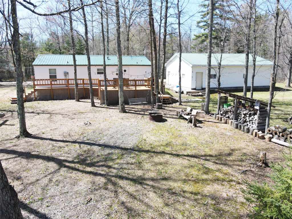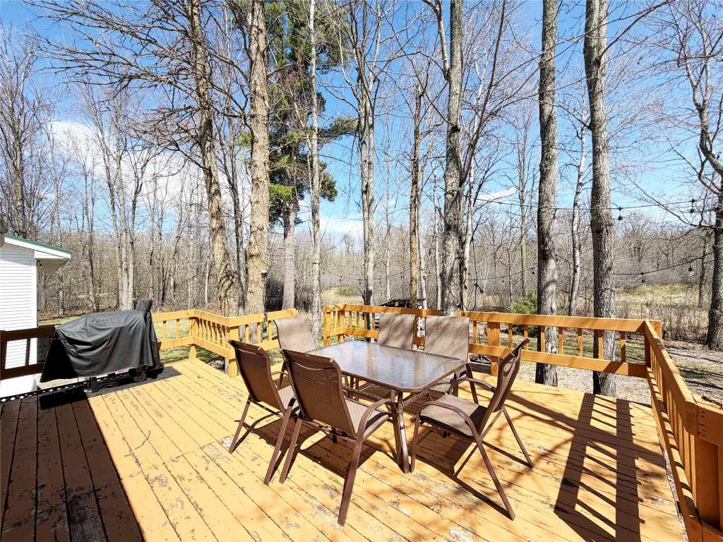 Welcome to your own slice of the Northwoods with this 3 bedroom 2 bathroom home set on a beautiful 1.26 acre lot. Located within the Loch Lomond Beach Club association, you will enjoy access to the lake, clubhouse, pool, tennis courts, and more. This home offers the comfort and convenience of main level living with an easy flowing layout designed for everyday living and relaxation. The primary bedroom features its own private ensuite bathroom. Step outside to the spacious back deck and take in the quiet natural setting, with nothing but woods behind you. Whether you are enjoying summer evenings on the deck or gathering around the campfire, this property offers the perfect setting to unwind. A large 3 car detached garage provides plenty of space for storage, vehicles, and all your lake toys. This home is being sold fully furnished so you can move right in! Do not miss your chance to make this Northwoods retreat your own.